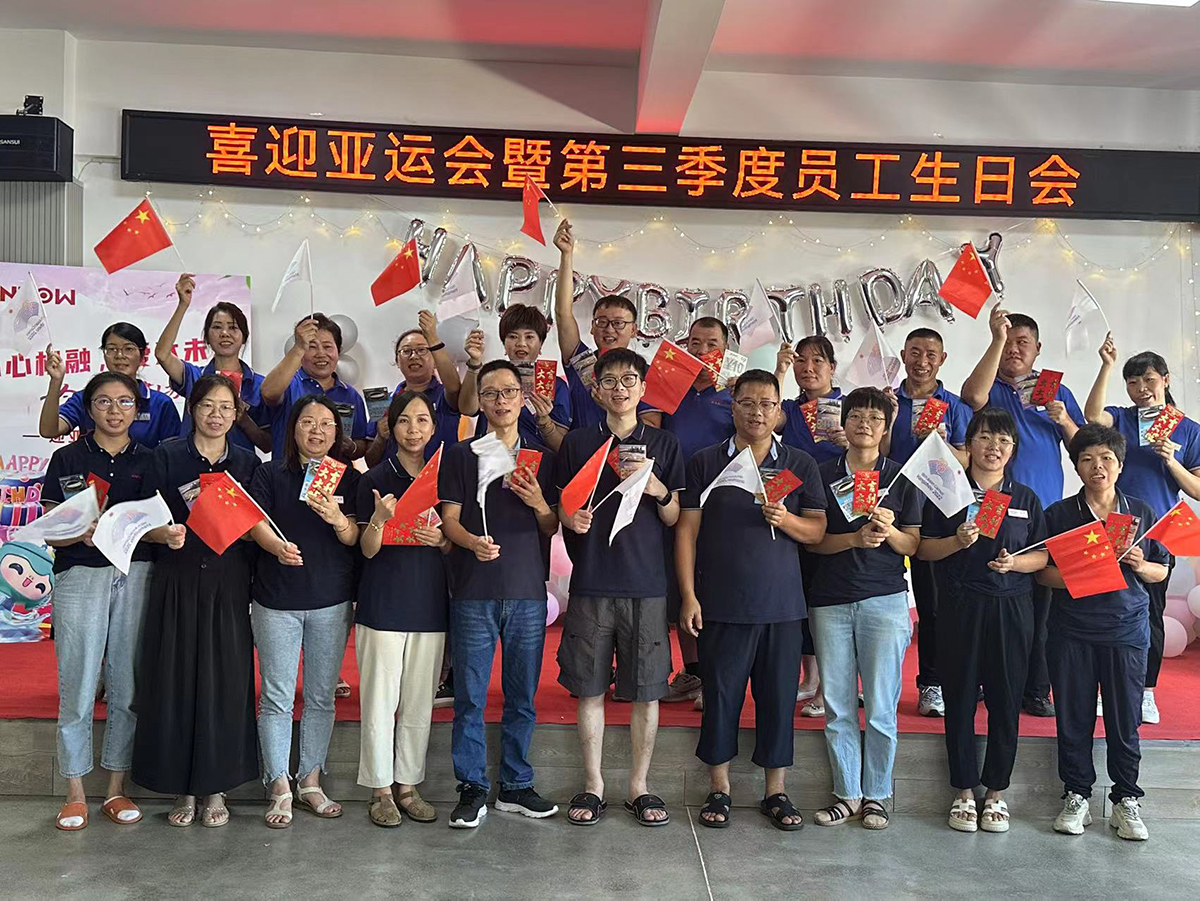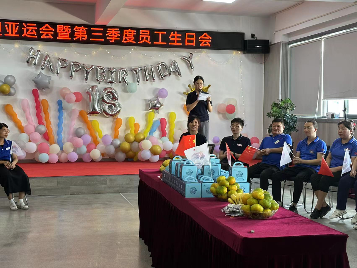 環(huán)節(jié)二:倪董為壽星們致生日賀詞。一份祝福,一份真誠,在這個特別的日子里,倪董代表公司股東攜全體員工為壽星們送上最真摯的生日祝福,祝大家生日快樂!愿所有的幸福、溫馨、好運都永遠(yuǎn)圍繞陪伴著你們;公司有今天的發(fā)展,離不開同仁們的辛勤付出,默默工作,心表感激;同時祝大家工作愉快,明天更加美好;今天的集體生日會正好趕上杭州第19屆亞運會,“心心相融,@未來”,大家齊聚一堂,共為亞運健兒加油!