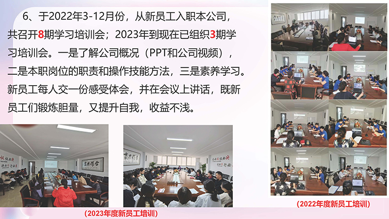 倪董表示:“路雖遠(yuǎn),行則將至;事雖難,做則必成。只要有愚公移山的志氣、滴水穿石的毅力,腳踏實(shí)地,埋頭苦干,積跬步以至千里,就一定能夠把宏偉目標(biāo)變?yōu)槊篮矛F(xiàn)實(shí)?!币粤?xí)近平總書(shū)記2023年新年致辭與大家共勉。因受疫情影響,2022年公司和員工都經(jīng)歷了一些困境,倪董通過(guò)ppt全面展示了過(guò)去一年公司同大家一起經(jīng)歷的點(diǎn)點(diǎn)滴滴,例如關(guān)愛(ài)“女職工健康知識(shí)”專(zhuān)題講座,“員工生日會(huì)”,“追尋紅色記憶”黨建活動(dòng)等等,希望大家能在公司這個(gè)大家庭中相伴相成,攜手共進(jìn)!