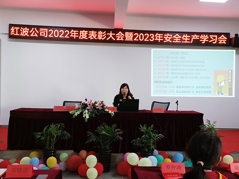 首先由公司辦公室主任彭綠敏主持開(kāi)場(chǎng)講話,并宣布此次大會(huì)的四項(xiàng)會(huì)程:第一、2022年度先進(jìn)、優(yōu)秀工作者表彰;第二、由優(yōu)秀、先進(jìn)工作者代表講話;第三、由總經(jīng)理作2022年度回顧生產(chǎn)工作,部署2023年度工作任務(wù)和目標(biāo);第四、由倪董作2022年度回顧總結(jié)暨安全生產(chǎn)學(xué)習(xí)會(huì)。